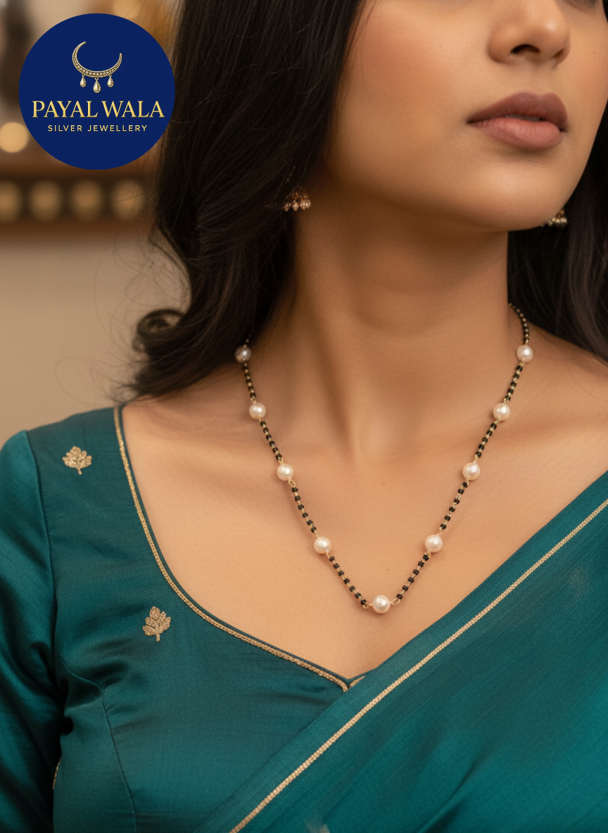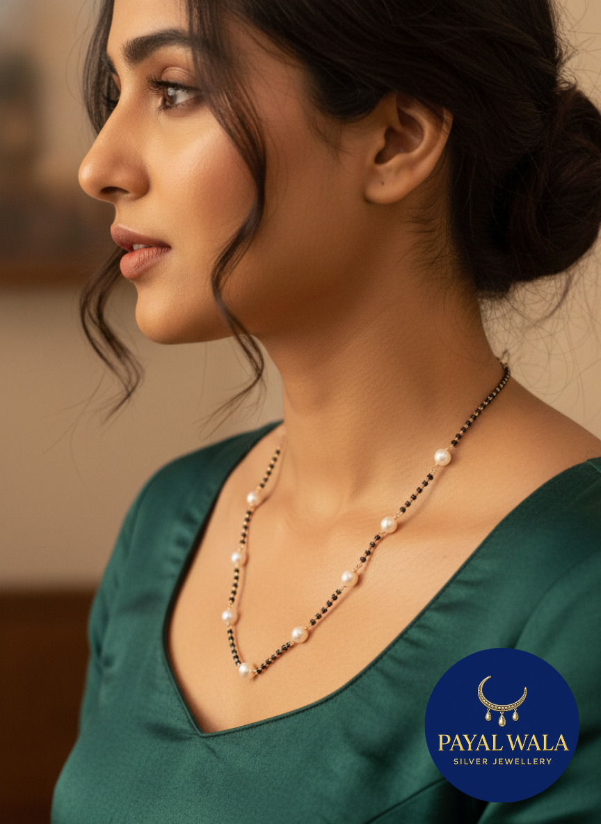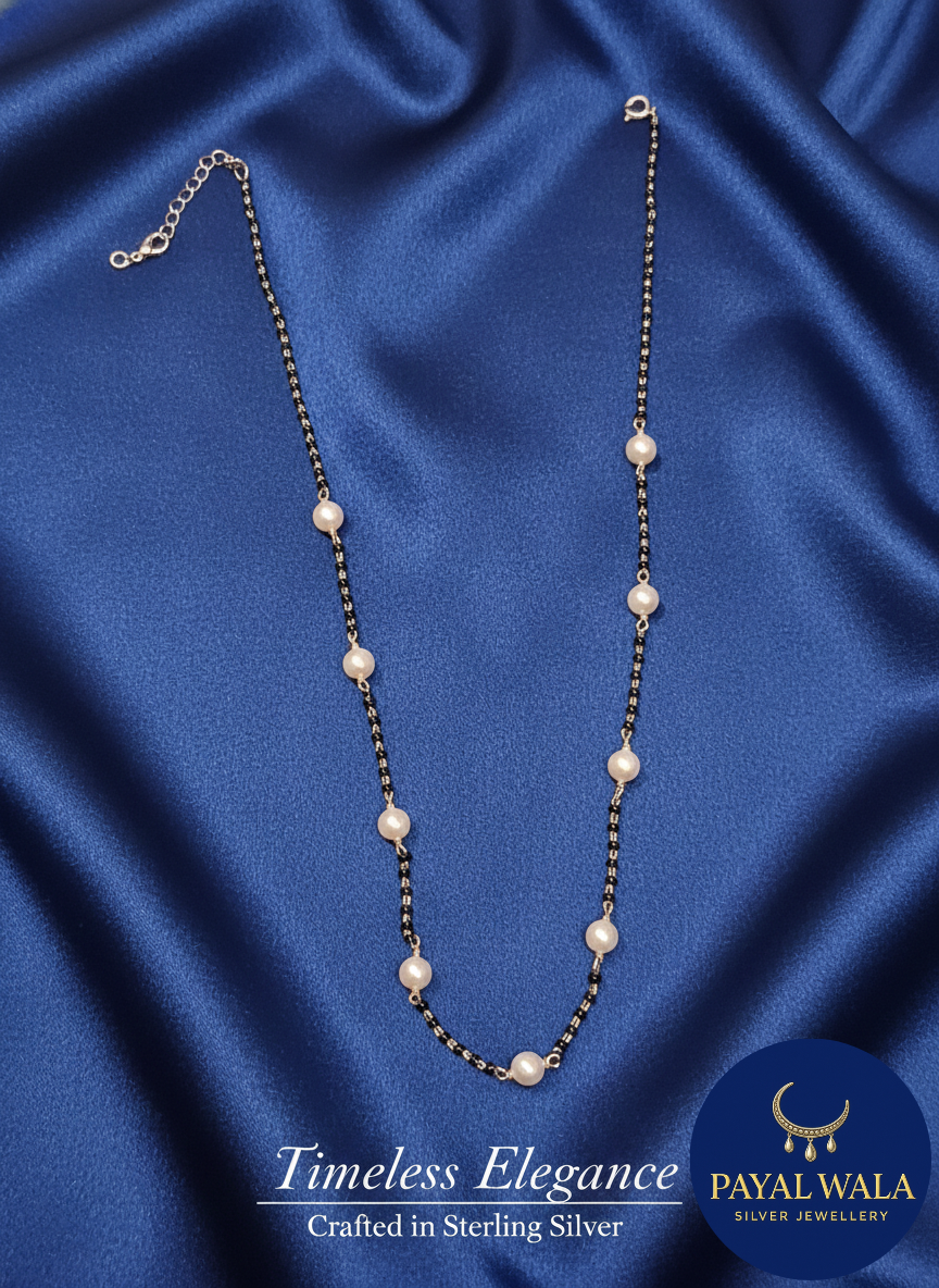 This exquisite Sterling Silver necklace embodies Timeless Elegance. It features a delicate chain interspersed with lustrous pearls and tiny black beads, creating a classic and sophisticated look.Perfect for adding a touch of grace to both everyday wear and special occasions.