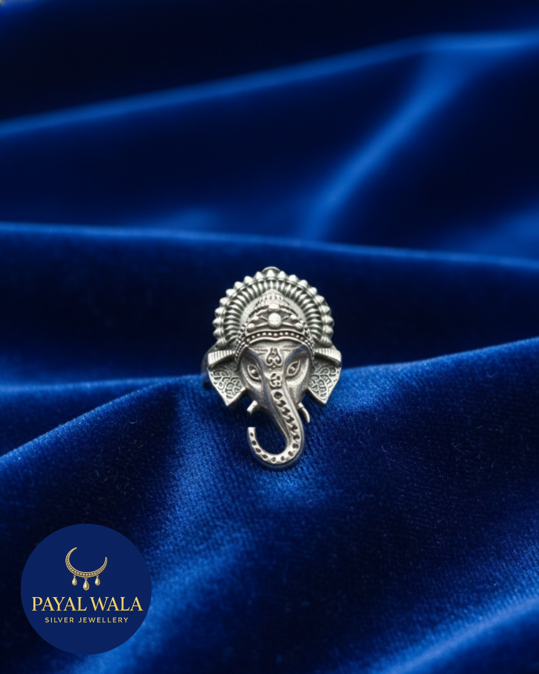 “Divine Elegance: The Oxidized Silver Ganesha Statement Ring